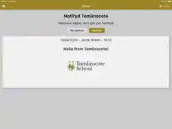 Tomlinscote School uses an app called "Notifyd" to send notices from staff to students. Developed by four of their pupils, they claim "it improved our communication system with students".[20]