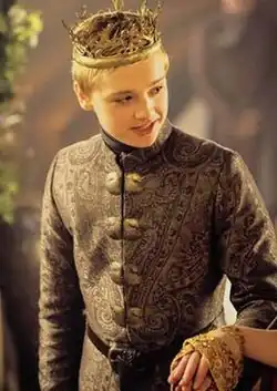 Tommen Baratheon is a fictional character in the A Song of Ice and Fire series of fantasy novels by American author George R. R. Martin, and its television adaptation Game of Thrones. Introduced in 1996's A Game of Thrones, Tommen Baratheon is the youngest son of Robert Baratheon and Cersei Lannister from the kingdom of Westeros. He subsequently appeared in Martin's A Clash of Kings (1998), A Storm of Swords (2000), A Feast for Crows (2005) and A Dance with Dragons (2011). After the unexpected death of his brother Joffrey Baratheon, he is crowned king of the Seven Kingdoms, although he soon falls under the warring influences of his mother Cersei and wife Margaery.
