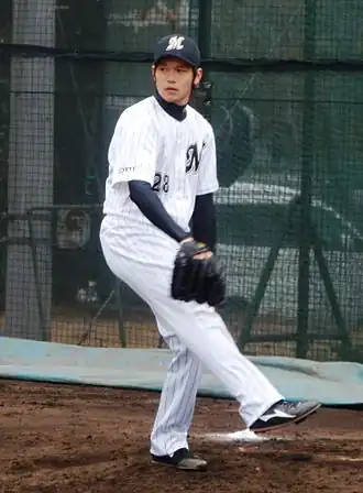 Tomohisa Nemoto (根本 朋久, Nemoto Tomohisa) is a Japanese professional baseball player. He was born on March 21, 1986, in Motomiya, Fukushima, Japan. He played two years for the Chiba Lotte Marines for three years, from 2008 to 2010, and from 2011 on, he has been playing for the Fighters.