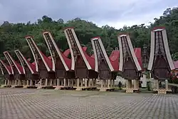 ![]() A row of tongkonans in Taman Mini Indonesia Indah, Jakarta. | |