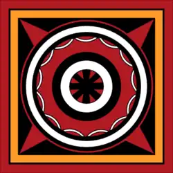 Circular motifs represent the sun, the symbol of power. Golden kris ('daggers') motifs symbolise wealth. Geometric spiralling designs and motifs are used that include buffalo heads - representing a prosperity and ritual sacrifice. Cockerels are represented in the colours of red, white, yellow and black; colors which represent the indigenous Toraja religion the Aluk To Dolo (the Way of the Ancestors). Black symbolises death and darkness; yellow, God's blessing and power; white, the colour of flesh and bone symbolising purity; and red, the colour of blood symbolising human life. The pigments are sourced from common materials; black from soot; white from lime; red and yellow from colored earth; and tuak (palm wine) is used to strengthen the colors.