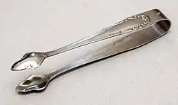 - Tongs consist a single band of bent metal, as in sugar tongs, most asparagus tongs (which are no longer common)[2] and the like. Sugar tongs are usually silver, with claw-shaped or spoon-shaped ends for serving lump sugar. Asparagus tongs are usually similar but larger, with a band near the head that limits how far the tongs can expand. Asparagus tongs for serving were introduced in 18th-century England, with smaller versions for eating asparagus appearing in the 19th century.[2]