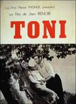 Toni is a 1935 French drama film directed by Jean Renoir and starring Charles Blavette, Celia Montalván and Édouard Delmont. The credits mention no writers other than the story writer Jacques Levert, but the script was later confirmed to be authored by Renoir and Carl Einstein.[1] It is an early example of the casting of non-professional actors and on-location shooting - both of which would influence the Left Bank of the French New Wave movement. Examining the romantic interactions between a group of immigrants (both from abroad and other parts of France) working around a quarry and a farm in Provence, it is also generally considered a major precursor to the Italian neorealist movement, for its concerns on the working class, use of non-professional actors and on-location shooting.