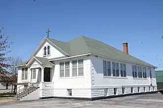 The Tontitown School Building is a historic former school building on US Highway 412 (US 412) in Tontitown, Arkansas. It is a single-story hip-roofed building, fashioned out of concrete blocks. It has corner blocks set in a quoin pattern, and gabled dormers front and rear which house paired round-arch windows. The front entry is sheltered by a gabled portico supported by Corinthian columns. The school was built in 1920 to accommodated the community's growing Italian immigrant population.[2] The building is now owned by the adjacent St. Joseph's Church.