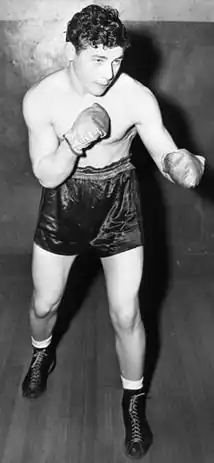 Janiro received advice and assistance from fellow Youngstown native Lenny "Boom Boom" Mancini (father of Ray Mancini), who introduced Janiro to his manager, Frankie Jacobs, and boxing trainer Ray Arcel.[2] In the 1940s, Janiro was ranked among the top 10 middleweights and fought such Hall of Famers as Rocky Graziano, Jake LaMotta, and Kid Gavilan.[1] During one bout at Madison Square Garden, the young boxer was introduced to ringside fan Harry S. Truman, then President of the United States.[2] Janiro had one draw with Graziano, who knocked him out in 1951.[3] He fought from 1943 to 1952.