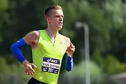 Tony van Diepen (Dutch: [ˈtoːni vɑn ˈdipən]; born 17 April 1996) is a Dutch track and field athlete competing in the 400 and 800 metres.[2] He won the bronze medal in the 400 m at the 2019 European Indoor Championships and silver at the 2021 European Indoor Championships. Van Diepen earned five medals with Dutch 4 × 400 m relays, either men's or mixed, at major championships, including silver for the men's relay at the 2020 Tokyo Olympics.