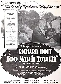 - ^ Smith, Sumner (February 21, 1925). "Too Much Youth; Richard Holt Has Leading Role in Story of Jazzy Youths Reformation". The Moving Picture World. 72 (8). New York City: Chalmers Publishing Co.: 789. Retrieved September 15, 2021.