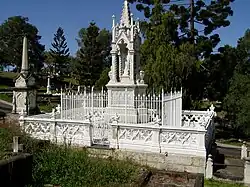 The place has a strong association with Governor Samuel Wensley Blackall and the prominence of the site selected for his huge monument indicates the prestige allotted to him and remains as a legacy of his influence and popularity. The Cemetery also has a special association with the life and work of its Trustees – those responsible for its development and maintenance, most of whom are interred within the grounds. As a foundation Trustee, architect James Cowlishaw's (1834–1929) association spanned 59 years. John Petrie (1822–1892), builder, monumental mason and Brisbane's first Lord Mayor was also a foundation Trustee and his monumental masonry business located opposite the main entry to the cemetery for 100 years produced a large proportion of the memorials and headstones in the cemetery. Architect Edward Myer Myers (1864–1926) was a Trustee from 1920 until his death and was responsible for the design of the Amenities Building. The monuments and gravestones provide evidence of the practice of monumental masonry and art metalwork in Queensland and of the work of notable architects, sculptors, artists and other craftsmen.[2]