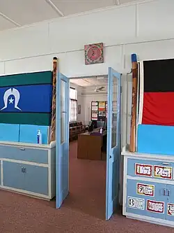 All classrooms measure 21 by 24 feet (6.4 by 7.3 m) and have flat internal wall and ceiling linings. Sections of early linings are distinguished by the use of batten or curved cover strips. In the 1956 section, a large opening between the classrooms remains, however folding doors (shown on the original plans) have been removed. Early, half-glazed double doors survive in the centre of the wall between the 1953 and eastern 1951 classrooms. Between the 1951 classrooms, one connecting door has been enclosed, and the other has been removed and a large opening created in its place.[1]