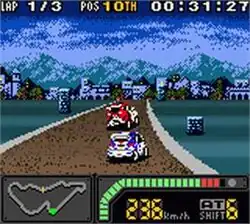 AllGame criticized the car attributes for being unbalanced, noting that the top speed is the only one that has a significant impact on the gameplay, but still considered the game enjoyable to play due to its sensation of speed.[2] The British video game magazine Planet Game Boy highlighted the game's speed and pace, especially as better cars are unlocked,[5] while the Spanish official Nintendo magazine Nintendo Acción praised the graphic improvements over its predecessor, stating that the cars are more detailed and that sharp curves and elevation changes are better animated.[6]