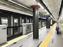 Toranomon Hills Station (虎ノ門ヒルズ駅, Toranomon Hiruzu eki)[1] is a railway station in Minato, Tokyo, Japan. The station's official name was announced on 5 December 2018, before it opened on 6 June 2020. The station is operated by Tokyo Metro. The station number is H-06.