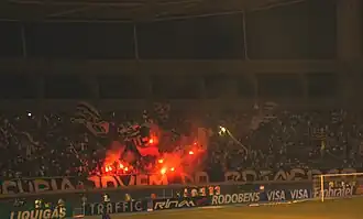 The torcidas are characterized by forming associations looking for the best way to support the team with flags, football chants, mosaics and performances inside and outside the stadium. The rationale for the fans' behavior is that it can help the team gather strength to beat the opponent. Although their main and explicit objective is to support their clubs, torcidas are also linked with several incidents of hooliganism and football violence.[1]