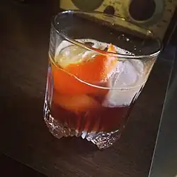 It may be served in a cocktail glass or coupe glass, and served with an orange slice or twist.[7][10] It may also be served with ice in an old fashioned glass.[8] It has a rich flavour with a mild bitterness.[9]