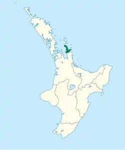 | Distribution of Toropuku inexpectatus on a map of the North Island Known native range