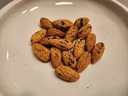 T. grandis was recorded in the first surviving Chinese dictionary, Erya, as early as the 2nd century BC.[3] In addition to ancient agricultural and Chinese medicine books such as Shennong Ben Cao Jing, Xinxiu bencao or Bencao Gangmu, it is described and cherished in ancient Chinese poetry.[7] In the Song dynasty, processed salt and pepper nutmeg-yew (椒鹽香榧), sugar ball nutmeg-yew (糖球香榧), and nutmeg-yew pastry (香榧酥) were listed as court tributes, and it was also a treasure on the dining table of senior scholar-officials.[7]