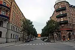 Torstenssonsgatan, Östermalm, Stockholm, Sweden, stretches between Strandvägen and Storgatan. The street is crossed by Riddargatan. Torstenssonsgatan is a wide and short avenue (about 200 meter) with linden trees. In the extension of the street is The Museum of National Antiquities (Historiska Museet). The street is a not a through street to Strandvägen.