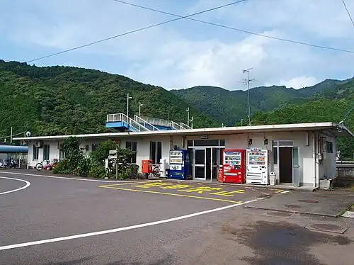 The station is located in the centre of what used to be the municipality of Saga which has now been merged into the town of Kuroshio.