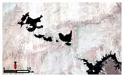 Astronauts on the ISS began noticing the first, easternmost lake growing in November 1998.[12] By late 1999, three additional lakes formed successively westward, and the westernmost lake started forming sometime between September 2000 and March 2001. These lakes are not yet named individually.