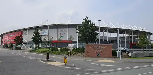 The Totally Wicked Stadium[7] is a multi-purpose stadium in St Helens, Merseyside, England. Known as Langtree Park until 2017, it has a capacity of over 18,000 and is the home ground of rugby league club St Helens R.F.C. and football club Liverpool F.C. Women. The stadium was granted planning permission in 2008 and construction started in 2010.[8]