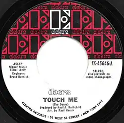"Touch Me" is a song by the Doors from their 1969 album The Soft Parade. Written by guitarist Robby Krieger in late 1968, it makes extensive use of brass and string instruments, including a solo by featured saxophonist Curtis Amy.[3][4]