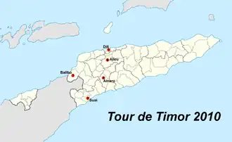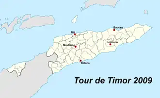 - ^ Tour de Timor Timing Official. "Overall Tour de Timor course profile with photos". Retrieved 2009-09-08.