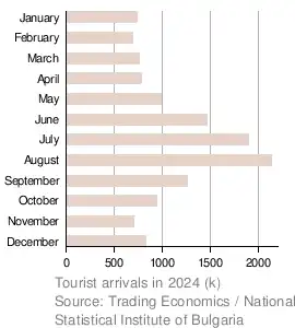 - ^ "Arrivals of visitors from abroad to Bulgaria by months and by country of origin".