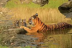 One half of the state is forested and offers a unique panorama of wildlife.[1] In the National Parks of Kanha, Bandhavgarh, Shivpuri and many others visitors have the opportunity to see the tiger, the bison and a wide variety of deer and antelope in natural surroundings.