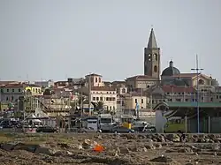 Oristano[58] flourished between the years 1100 and 1400, during the period of the Giudicato of Arborea. Inside the ancient walls remain the Tower of San Cristoforo or of Marianus II of Arborea and the opposite, Portixedda. The cathedral and the churches of San Francesco and Santa Chiara are located in the historic center, near the Eleonora of Arborea square. Just outside Oristano, there is the pond of Cabras[59] and the nearby lagoon of Mistras,[60] where thousands of cormorants and flamingos, as well as ducks, coots, white herons, western swamphen and black-winged stilt live seasonally.