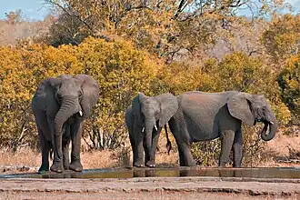 The Kruger National Park, established in 1926, is one of the most visited national parks in the country, with a total of 1 659 793 visitors in the 2014/15 period.[6] The region is also home to nearly 80 percent of the world's rhino population. Due to COVID-19 restrictions impeding tourism and movement in the region, the killings of rhino species in South Africa have fallen by 53 percent in 2020.[7]