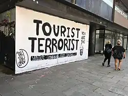 The neologism has also been used in the media to tag the acts of vandalism, protests and incidents with tourists during protests in South Europe against overtourism.[3]