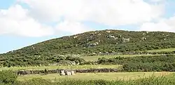 In December 1931 a hoard of gold ornaments was found in the parish. A sunken lane, known locally as Badger's Lane, leads down from Lady Downs onto the road to Amalveor. Here at SW4794 3759, concealed in an ancient stone hedge, was found a collection of beautiful gold objects, including two twisted neckrings, four armrings and two lengths of unfinished gold rod. One necklet consists of a single twisted strand of gold, and the other consists of three strands loosely twisted together. The gold is very fine, and probably came from Ireland. These ornaments date from the late Bronze Age and they now reside in the British Museum. A replica of the hoard can be seen at the Penlee House Museum in Penzance.[4] In 2007 there were calls in the local Cornish press for the gold hoard to be returned to Cornwall from the British Museum.