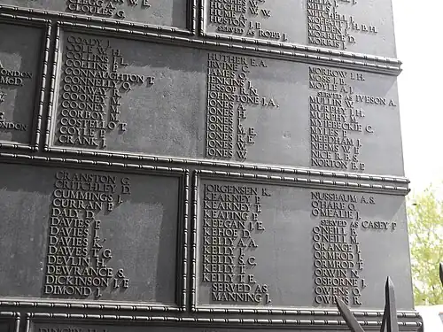 - ^ "Tower Hill Memorial". Commonwealth War Graves Commission. Retrieved 2 May 2018.