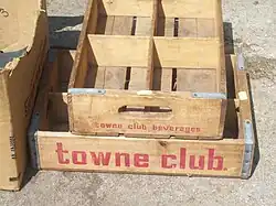 Towne Club was founded and operated by Harold Samhat in the mid-1960s.[1] The company first started selling its pop in its own retail outlets in Detroit, known as "pop centers". It was an affordable alternative to bigger brands such as Coca-Cola and Pepsi, and often sold well in Detroit's poorer neighborhoods. The pop centers offered many more flavors of soda pop than were typically seen in grocery stores, and the pop was sold by the 24-glass-bottle wooden case. People would enter the store, grab a wooden crate, and walk around the various stacks of pop around the warehouse-type store. Customers would bring back empty bottles and cases and start all over again.