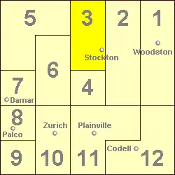 Township 3 was formed from Rooks County townships Farmington and Stockton[4] in 1971, pursuant to Kansas Statute 80-1110.[5] That statute allowed for the dissolution of townships, while assigning those territories to contiguous townships.[6]