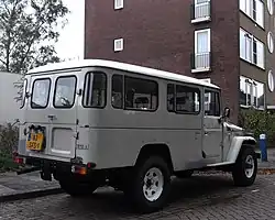 In Brazil, the J40 was known as the Toyota Bandeirante, and made from 1968 until 2001.[5] The previous generation, built in Brazil from 1958 to 1962, received the series code FJ25 (open roof) and FJ25L (soft top) but are often referred to as FJ-251, and in 1961 thanks to a new motor called 2F - not to be confounded with the later 2F engine from 1975 - some late units were built with the series code FJ-151L (soft top). Bandeirantes built from 1968 to 1993 were fitted with locally manufactured Mercedes-Benz engines and received OJ40/45–series chassis codes (OJ50/55 from 1973). Imported Toyota engines were once again used on those built from 1994 to 2001, which have BJ50/55 series model codes.[9]