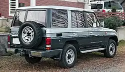 In Japan, it came with electronic fuel injection and a four speed automatic transmission. The 2.4 L turbocharged diesel engine with 71 kW (97 PS; 95 hp) and 240 N⋅m (177 lbf⋅ft) high torque unit was installed. The lineup included 2-door and 4-door versions available in SX, LX or EX (4-door only) grades of trim.