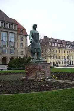 On 13 October 1950 the mayor of East-Berlin Friedrich Ebert offered a newly built flat to a former Trümmerfrau in honour of her commitment. The flat was located in one of the terraces in the street which was at the time called Stalinallee and had been designed by Hans Scharoun.