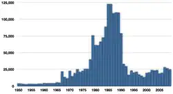 The Mediterranean horse mackerel is an important resource in the Mediterranean Sea and the Black Sea region.[6] It makes up 54% of catches in the Black Sea and 39% in the Sea of Marmara. In the Aegean and Mediterranean Seas, it only totals 3–4% of annual catches. Fixed nets and seines are common methods used to catch Mediterranean horse mackerel.[1] Along with T. trachurus, it is one of two Trachurus species in the Mediterranean. Because it forms dense schools and lives in shallower waters, the Mediterranean horse mackerel is the more commonly caught species.[11] Along with Engraulis encrasicolus, it makes up 59% of seafood production in Turkey.[9]