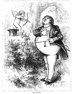 Cupid shoots his arrow into the heart of Tracy Tupman - illustration by Thomas Nast (1873)