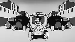 Mickey is driving an anthropomorphized taxicab in the city, and picks up an enormous pig who is so fat that he weighs down the car. An angry cat traffic cop browbeats Mickey for holding up traffic, and Mickey drives away as best he can. Mickey gets in a conflict with a tiny car driven by a dog, and cut each other off until the dog's car sinks into a water-filled pothole. Driving over rough road, the pig falls out of the car, and—after a rather violent parking job—Mickey discovers that his fare is gone.