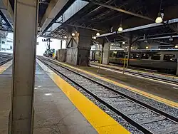 An American example of a terminal with this feature is Union Station in Washington, DC, where there are bay platforms on the main concourse level to serve terminating trains and standard island platforms one level below to serve trains continuing southward. The lower tracks run in a tunnel beneath the concourse and emerge a few blocks away to cross the Potomac River into Virginia.