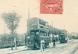 The world's first electric tram line operated in Sestroretsk near Saint Petersburg invented and tested by inventor Fyodor Pirotsky in 1875.[29][30] Later, using a similar technology, Pirotsky put into service the first public electric tramway in St. Petersburg, which operated only during September 1880.[31] The second demonstration tramway was presented by Siemens & Halske at the 1879 Berlin Industrial Exposition. The first public electric tramway used for permanent service was the Gross-Lichterfelde tramway in Lichterfelde near Berlin in Germany, which opened in 1881. It was built by Werner von Siemens who contacted Pirotsky. This was the world's first commercially successful electric tram. It drew current from the rails at first, with overhead wire being installed in 1883.[32]