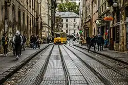 The Lviv tramway network (Ukrainian: Львівський трамвай, translit.: L’vivs’kyi tramvai) is an electric tram in Lviv, Ukraine. It is one of two tram systems in Western Ukraine (the other one in Vinnytsia), and the largest among narrow-gauge tram systems in Ukraine.