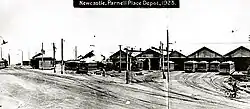 A depot was initially set up on the corner of Hunter and Perkins Streets.[4] In 1893, the terminal was extended east to Parnell Place and the new larger depot constructed, with the original depot retained for light maintenance and repair work.[2]
