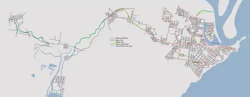 The Newcastle Tram System was an extensive network that operated between Newcastle and the outer suburb of Wallsend from 1887 to 1950. At its peak the line extended from the city to Speers Point and West Wallsend. The service was rarely profitable, and low utilisation for a variety of reasons including the convenience of buses led to it closing and the tracks being removed.