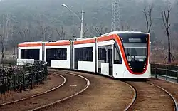 Trams in Wuhan may refer to any one of the tram systems currently operational in the city of Wuhan, Hubei, China. The first tram started revenue service in Wuhan is the Auto-city T1 Line, which began on July 28, 2017.[1] Subsequently, Optics Valley tram started revenue service from April 1, 2018.[2]