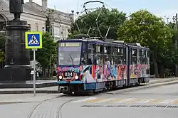 The Yevpatoria tram system (Ukrainian: Євпаторійський трамвай, romanized: Yevpatoriyskyy tramvay) is a tram system operating in Yevpatoria, in the disputed territory of Crimea.