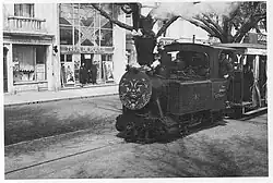 Steam tramway, ready to depart from Grande-Côte, 1904A steam train at the Casino de FoncillonSteam tramway in the sea-side resort of PontaillacSteam tramway at Café des Bains in Royan, 1930sInauguration of a Campagne petrol railcar (Automotrice) by Gaston Nougarède, director of the SGTR on the left in front of the railcar with black cap. View of the inaugural train departing from Ronce-les-Bains for the return journey of the guests, 1924.[3]