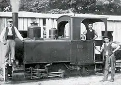 The first metre-gauge Decauville railcars (Automotrice) were procured around 1903.[4] From 1924, six petrol-powered Campagne railcars from the 1910s were used on the 600 mm forest railway lines, both of which ran on the Groupe Laborie narrow-gauge lines in 1914 after the outbreak of the First World War and were finally used as light railcars on the metre-gauge lines from Cormeilles to Glos and Montfort-sur-Risle in the Euredepartment around 1933.[5][Note 2][6]