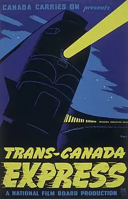 Trans-Canada Express is a 20-minute 1944 Canadian documentary film, made by the National Film Board of Canada (NFB) as part of the World War II Canada Carries On series. The film was produced by Sydney Newman and directed by Stanley Hawes.[1] Trans-Canada Express documents the importance of the railroad in Canada, emphasizing the use of rail transport during World War II.[2] The film's French version title is D'un océan à l'autre.